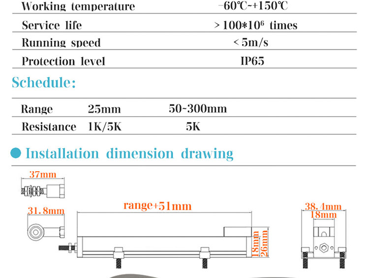 ·  Linear displacement sensor can be u