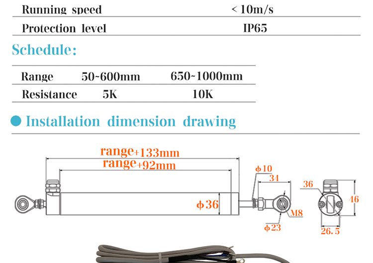 DHL waterproof linear displacement sensor